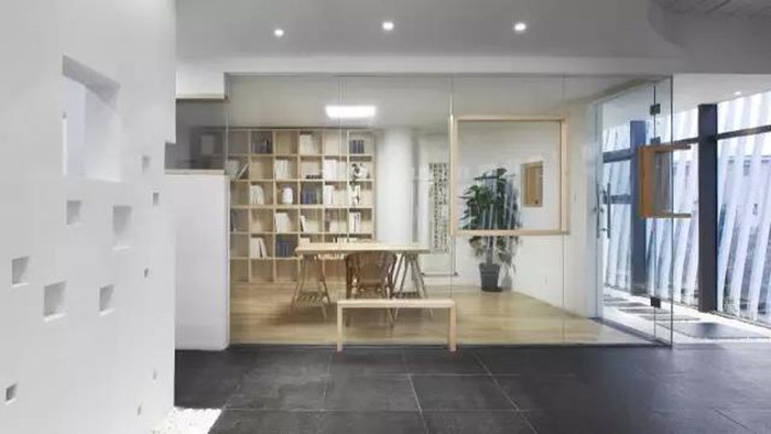任何一種材料,放在不同的空間中都可以呈現(xiàn)出一種不同的感覺。在康藍(lán)裝飾的辦公空間中,一進門的位置就可見到一組鋼筋所搭建的造型,而這個造型的作用并非承重,而是作為影壁使用。這是一種另類的構(gòu)思,但卻并非不可運用。在一些以銷售為主的公司中,所要呈現(xiàn)的質(zhì)感即為干凈整潔,所體現(xiàn)的企業(yè)文化也不再是裝修公司中的創(chuàng)新。